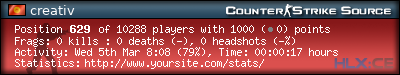| Любимая карта:* | de_dust2 |