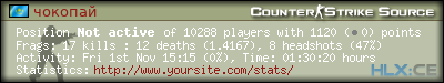 Сгенерировано с помощью HLstatsX Community Edition 1.6.19