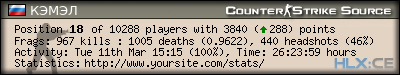 Сгенерировано с помощью HLstatsX Community Edition 1.6.19